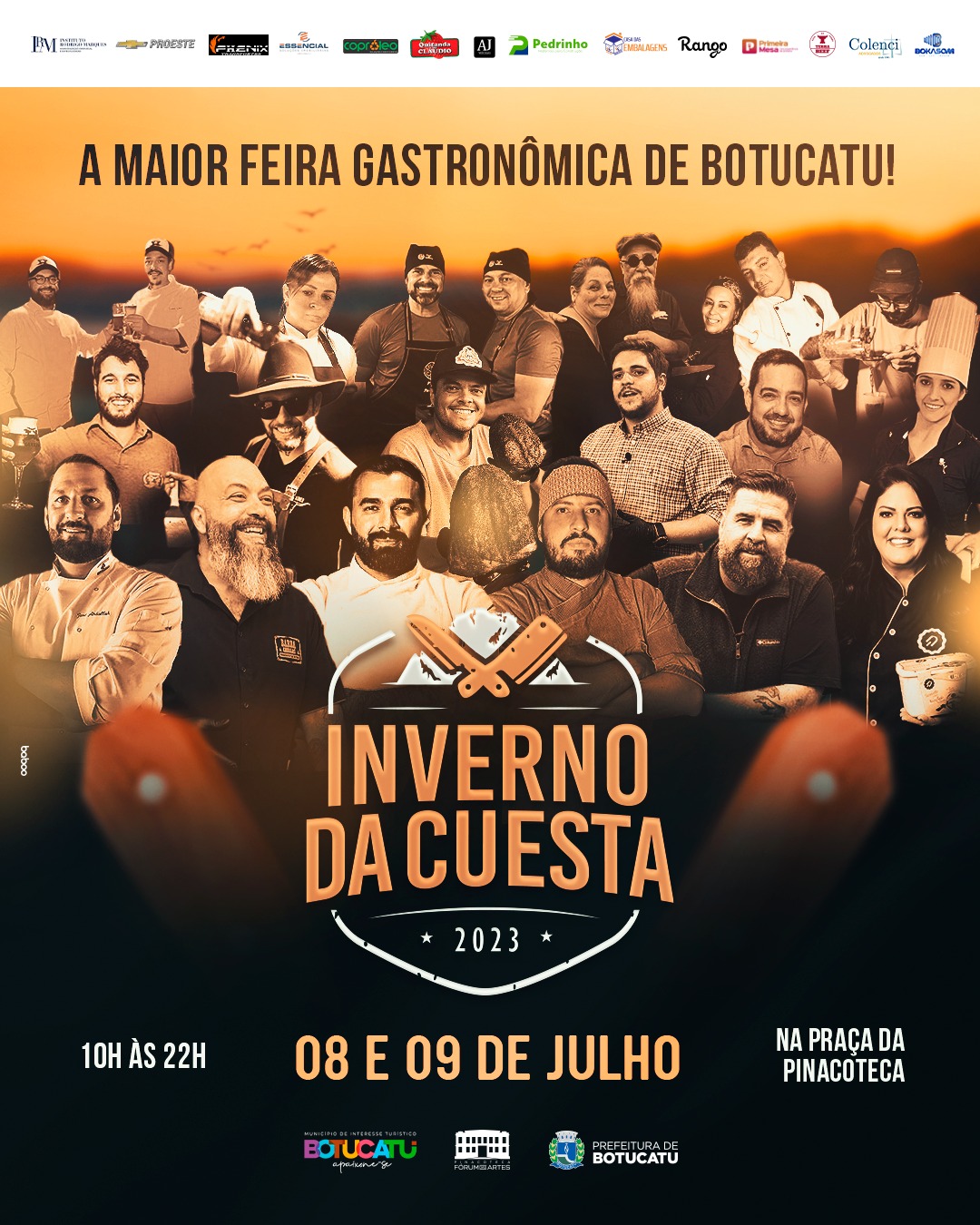 O Festival Gastronômico Inverno da Cuesta é uma iniciativa que reúne turismo, gastronomia, solidariedade e cultura em um só lugar. Durante o evento também será realizada a feira de artes e artesanato, pela secretaria adjunta de Turismo de Botucatu.